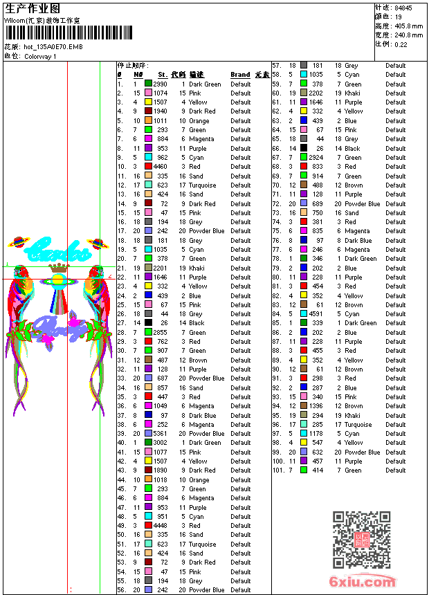 鸟 点此上传花版兑乐绣币/现金 emb花版参数: 大小:520.00 KB / 尺寸:241*406[毫米] / 针数:84845针 / 线色:19 / 格式:emb / 版本:e2 版带文件需绣花软件方可打开,可配色打印导出各种格式或直接上机绣。如无绣花软件可下载1:1模拟效果图。 PNG图片信息:大小:1.1 (MB) /图宽*高:911x1535(像素) emb下载 1:1图下载 关闭 相似花版: 熊猫 男装 章仔 鸟 鸟 蝴蝶 蜜蜂 鸟 鸟 范思哲 十字绣 十字绣 十字绣 十字绣 范思哲 蜻蜓 鸟 男装 章仔 男装 章仔 鹰 羽毛 上一个花样:猫头 下一个花样:熊猫