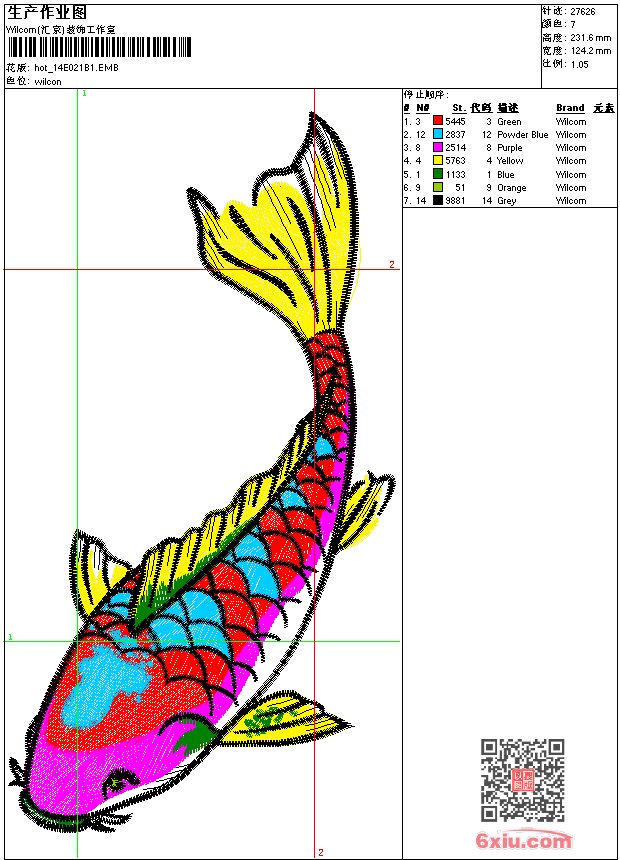 鲤鱼 点此上传花版兑乐绣币/现金 emb花版参数: 大小:153.50 KB / 尺寸:124*232[毫米] / 针数:27626针 / 线色:7 / 格式:emb / 版本:e2 版带文件需绣花软件方可打开,可配色打印导出各种格式或直接上机绣。如无绣花软件可下载1:1模拟效果图。 PNG图片信息:大小:0.4 (MB) /图宽*高:470x877(像素) emb下载 1:1图下载 关闭 相似花版: 鲤鱼 鲤鱼 豹 猫头 鸟 熊猫 男装 章仔 鸟 鸟 蝴蝶 蜜蜂 鸟 鸟 范思哲 十字绣 十字绣 十字绣 十字绣 范思哲 蜻蜓 上一个花样:美人鱼 下一个花样:鲤鱼