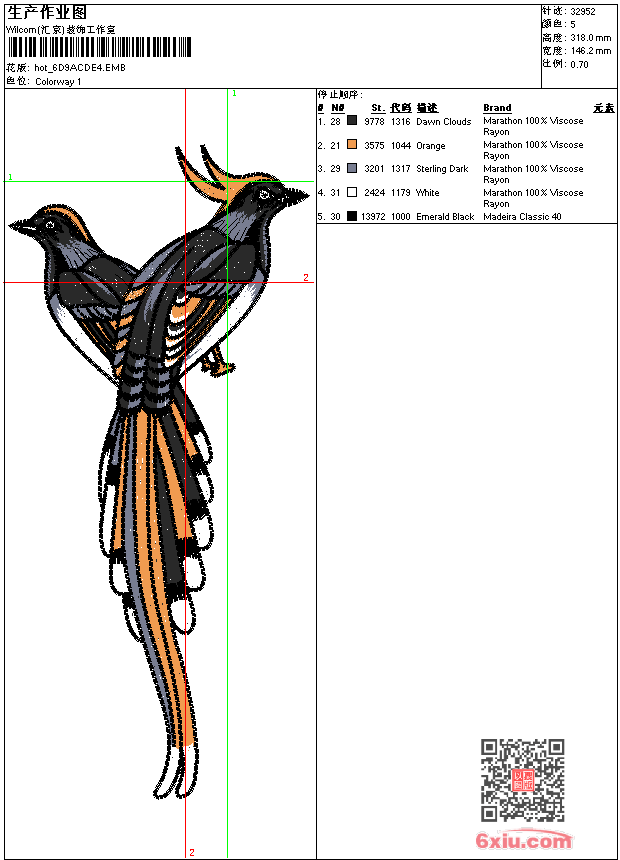 鸟 点此上传花版兑乐绣币/现金 emb花版参数: 大小:207.50 KB / 尺寸:146*318[毫米] / 针数:32952针 / 线色:5 / 格式:emb / 版本:e2 版带文件需绣花软件方可打开,可配色打印导出各种格式或直接上机绣。如无绣花软件可下载1:1模拟效果图。 PNG图片信息:大小:0.5 (MB) /图宽*高:554x1203(像素) emb下载 1:1图下载 关闭 相似花版: 鸟 鸟 男装 章仔 鸟 靓花 鸟 孔雀 孔雀 人物 动漫 鸟 领 恐龙 恐龙 猫头 老虎 龙 蜘蛛 蛇 鹰 汉服 锚 上一个花样:蜜蜂 下一个花样:鸟