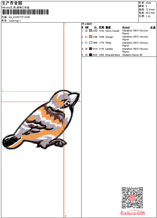 鸟 点此上传花版兑乐绣币/现金 emb花版参数: 大小:79.00 KB / 尺寸:95*73[毫米] / 针数:9728针 / 线色:5 / 格式:emb / 版本:e2 版带文件需绣花软件方可打开,可配色打印导出各种格式或直接上机绣。如无绣花软件可下载1:1模拟效果图。 PNG图片信息:大小:0.1 (MB) /图宽*高:359x276(像素) emb下载 1:1图下载 关闭 相似花版: 男装 章仔 蝴蝶 蝴蝶 蜜蜂 鸟 鸟 鸟 男装 章仔 鸟 靓花 鸟 孔雀 孔雀 人物 动漫 鸟 领 恐龙 恐龙 猫头 老虎 上一个花样:鸟 下一个花样:男装 章仔