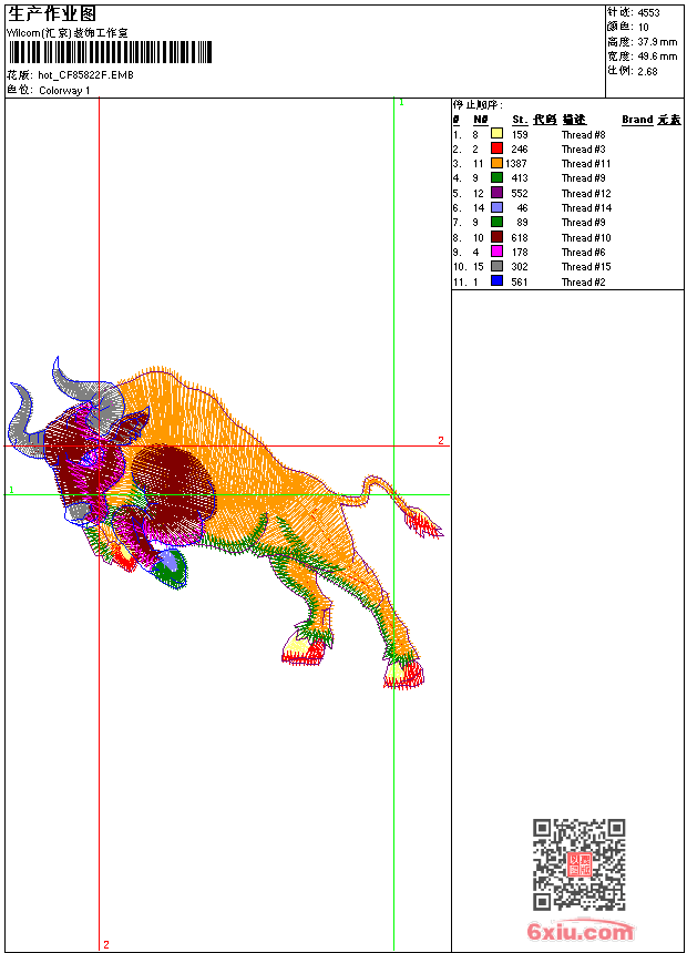 牛 点此上传花版兑乐绣币/现金 emb花版参数: 大小:69.00 KB / 尺寸:50*38[毫米] / 针数:4553针 / 线色:10 / 格式:emb / 版本:e2 版带文件需绣花软件方可打开,可配色打印导出各种格式或直接上机绣。如无绣花软件可下载1:1模拟效果图。 PNG图片信息:大小:0.1(MB) /图宽*高:188x144(像素) emb下载 1:1图下载 关闭 相似花版: 飞机 男装 章仔 范思哲 怪兽 木星 飞机 男装 章仔 男装 章仔 男装 章仔 蝙蝠 鹰 蝙蝠 蝙蝠 鹰 狗头 蝙蝠 鹰 怪兽 怪兽 鹰 上一个花样:保罗 POLO 下一个花样:飞机