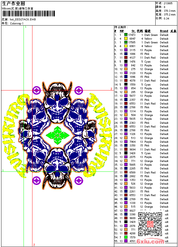 骷髅 点此上传花版兑乐绣币/现金 emb花版参数: 大小:1.41 MB / 尺寸:375*370[毫米] / 针数:213805针 / 线色:8 / 格式:emb / 版本:e2 版带文件需绣花软件方可打开,可配色打印导出各种格式或直接上机绣。如无绣花软件可下载1:1模拟效果图。 PNG图片信息:大小:2.2 (MB) /图宽*高:1420x1401(像素) emb下载 1:1图下载 关闭 相似花版: 怪兽 男装 章仔 老虎 骷髅 靓花 龙 怪兽 怪兽 骷髅 龙 怪兽 怪兽 鲤鱼 鲤鱼 龙头 靓花 怪兽 怪兽 龙头 怪兽 上一个花样:龙 下一个花样:怪兽