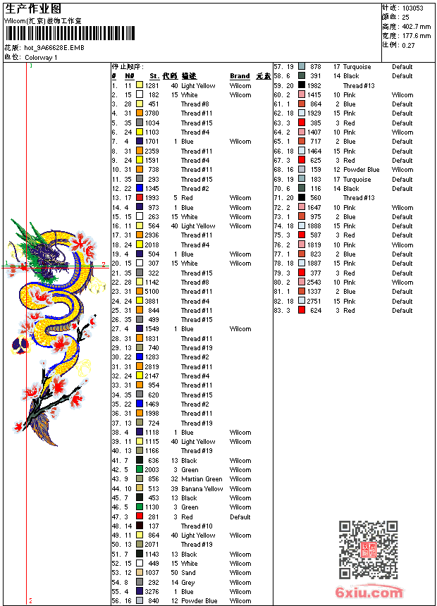 龙 点此上传花版兑乐绣币/现金 emb花版参数: 大小:936.50 KB / 尺寸:178*403[毫米] / 针数:103053针 / 线色:25 / 格式:emb / 版本:e2 版带文件需绣花软件方可打开,可配色打印导出各种格式或直接上机绣。如无绣花软件可下载1:1模拟效果图。 PNG图片信息:大小:1.1 (MB) /图宽*高:672x1524(像素) emb下载 1:1图下载 关闭 相似花版: 骷髅 怪兽 男装 章仔 老虎 骷髅 靓花 龙 怪兽 怪兽 骷髅 龙 怪兽 怪兽 鲤鱼 鲤鱼 龙头 靓花 怪兽 怪兽 龙头 上一个花样:老虎 下一个花样:骷髅