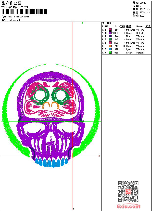 骷髅 点此上传花版兑乐绣币/现金 emb花版参数: 大小:156.50 KB / 尺寸:126*133[毫米] / 针数:26826针 / 线色:7 / 格式:emb / 版本:e2 版带文件需绣花软件方可打开,可配色打印导出各种格式或直接上机绣。如无绣花软件可下载1:1模拟效果图。 PNG图片信息:大小:0.3 (MB) /图宽*高:476x502(像素) emb下载 1:1图下载 关闭 相似花版: 靓花 龙 人物脸谱 龙 龙 龙头 龙头 怪兽 靓花 靓花 靓花 老虎 龙 骷髅 怪兽 男装 章仔 老虎 骷髅 靓花 龙 上一个花样:鲤鱼 下一个花样:靓花